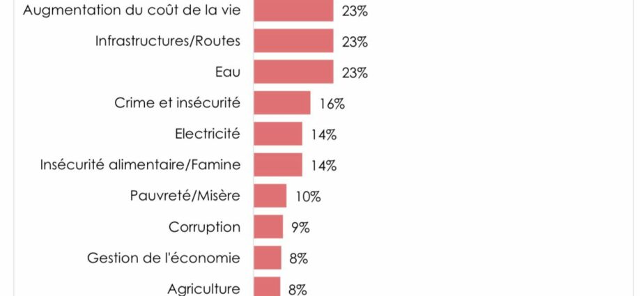 - L’éducation est étroitement liée à l’augmentation du coût de la vie, aux infrastructures/routes et à l’approvisionnement en eau, juste après la santé et le chômage.